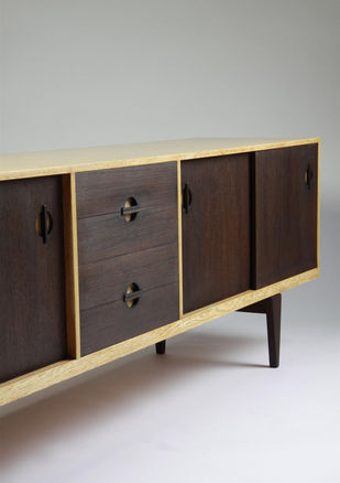 Conservation and restoration of a sideboard in oak and wenge designed by Erik Wörts, Denmark 1950s
